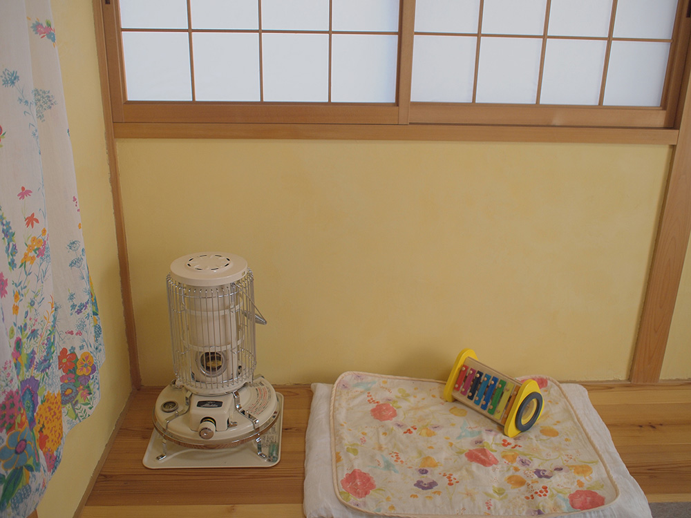 娘が産まれると分かり、自然で明るく気持ちの良い空気の中で一緒に暮らしていきたいと、ゆっくりと時間をかけて塗りました。出産後、最初に親子3人で寝たのもこの部屋です。漆喰と無垢の木の香りに包まれた、娘を元気いっぱいに育てられる環境になっています。とっても塗りやすかったので、びっくりしました!!おかげで、夫とお腹の娘と3人で塗った大切なお部屋になりました。